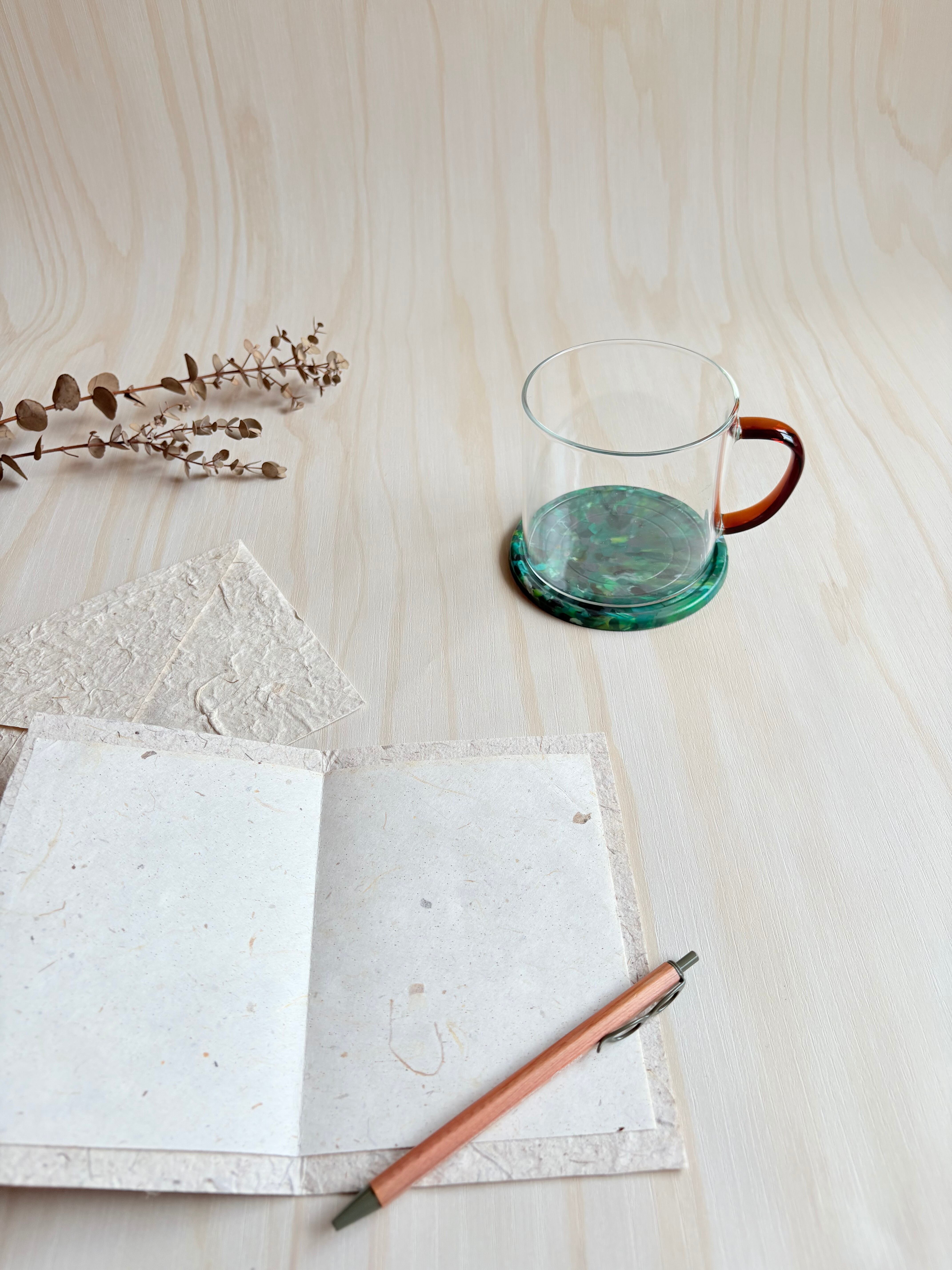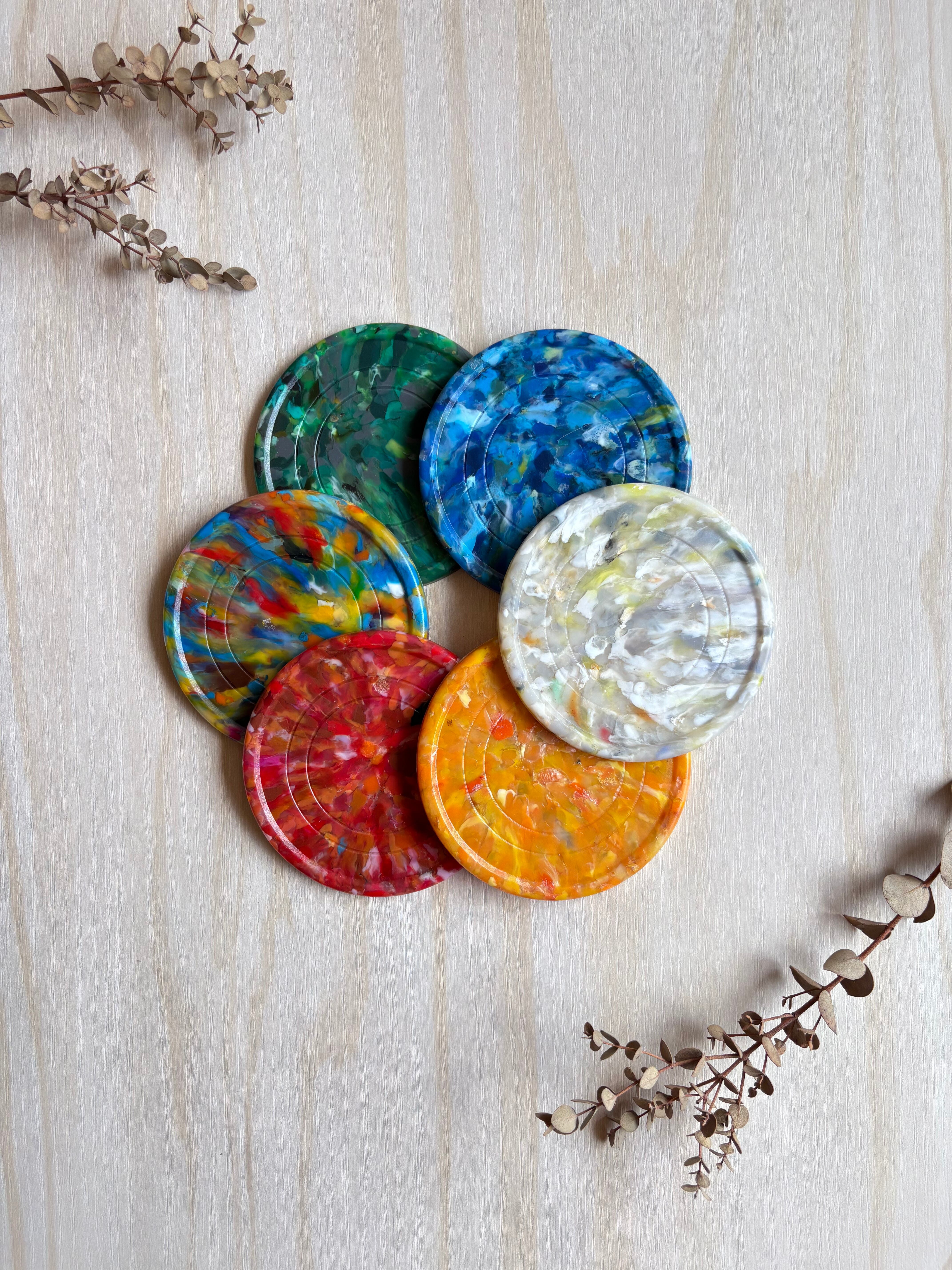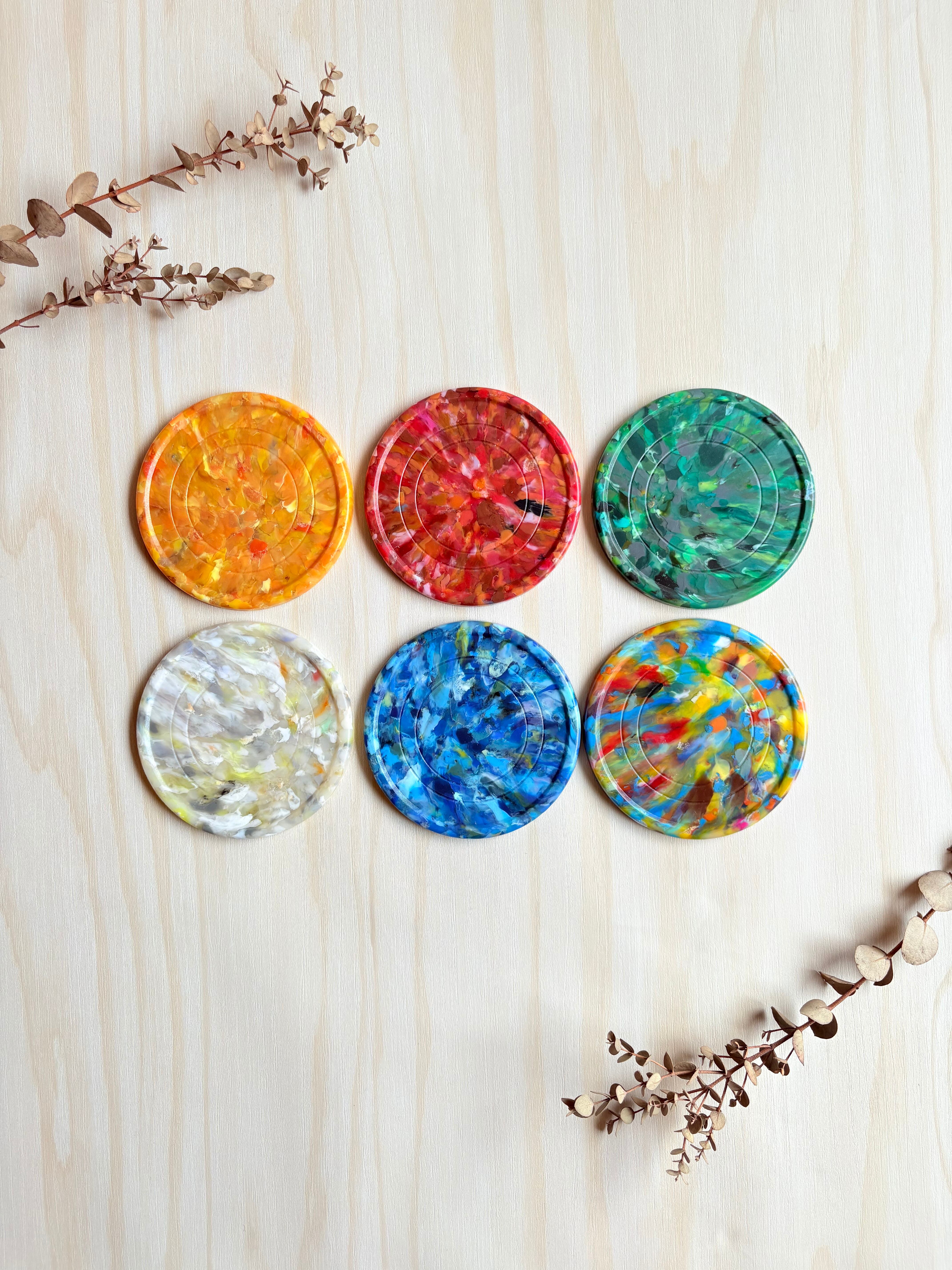 海洋プラスチックゴミをアップサイクルしたユニークなコースター。