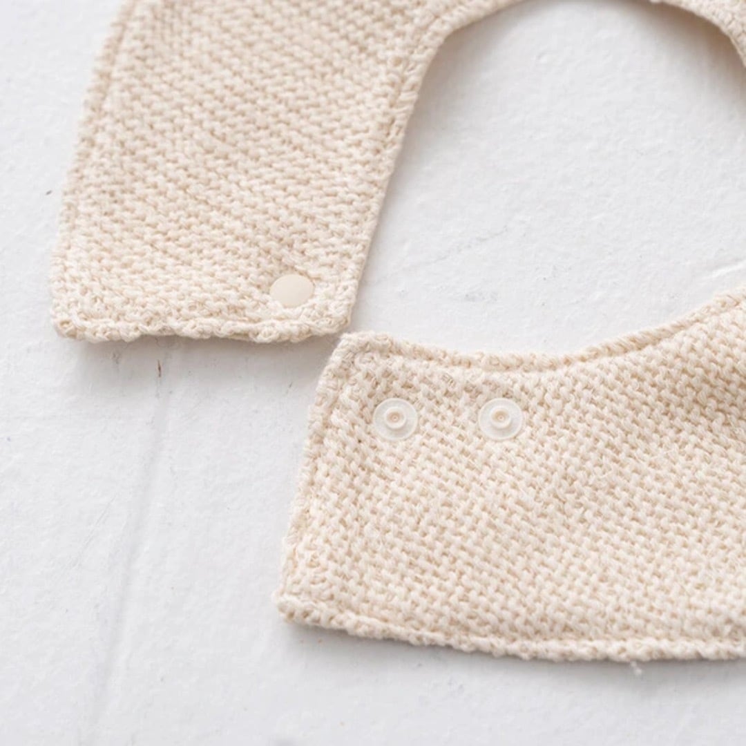 スナップボタンが2つ付いて、首回りの調整が可能です。