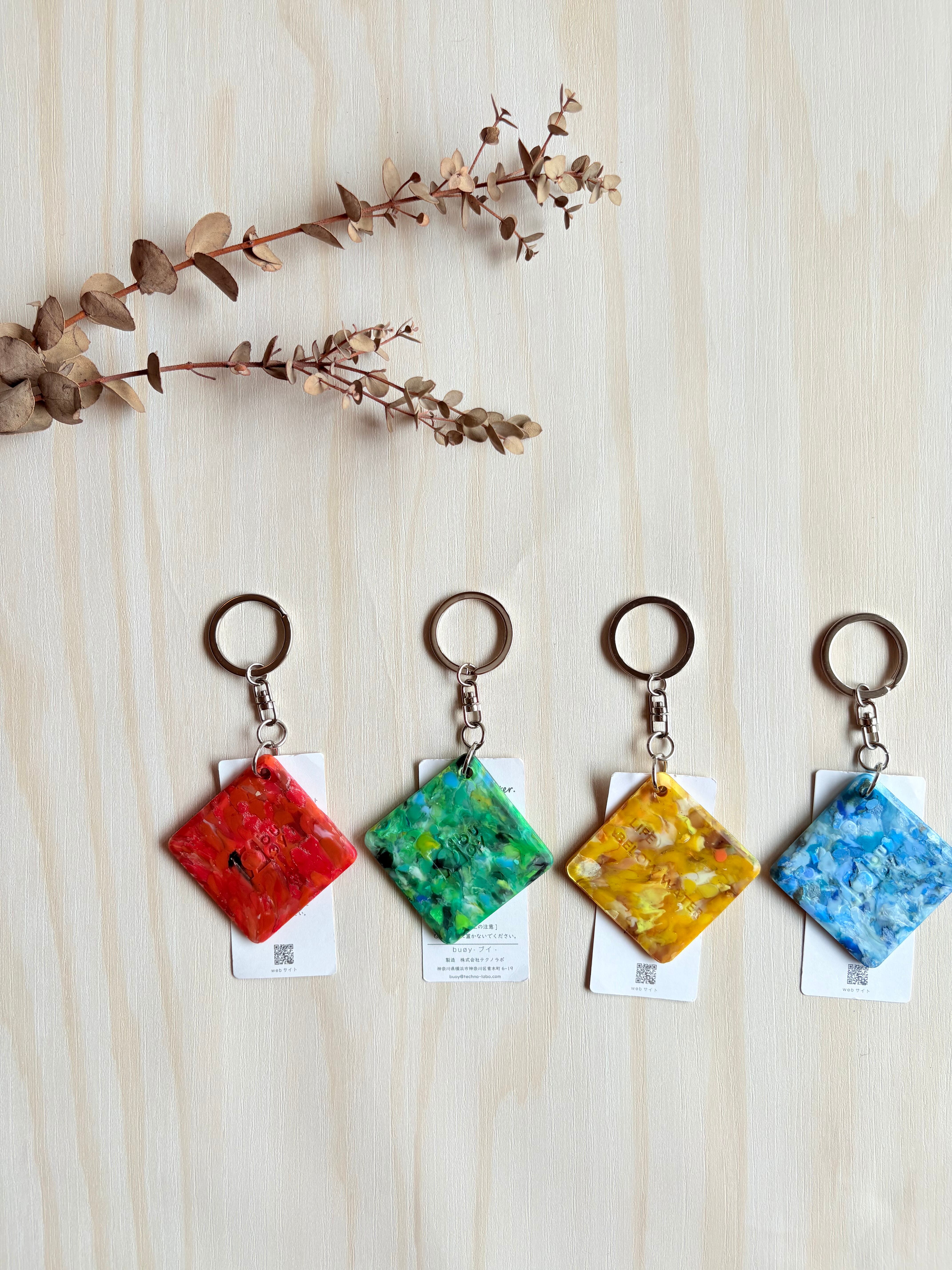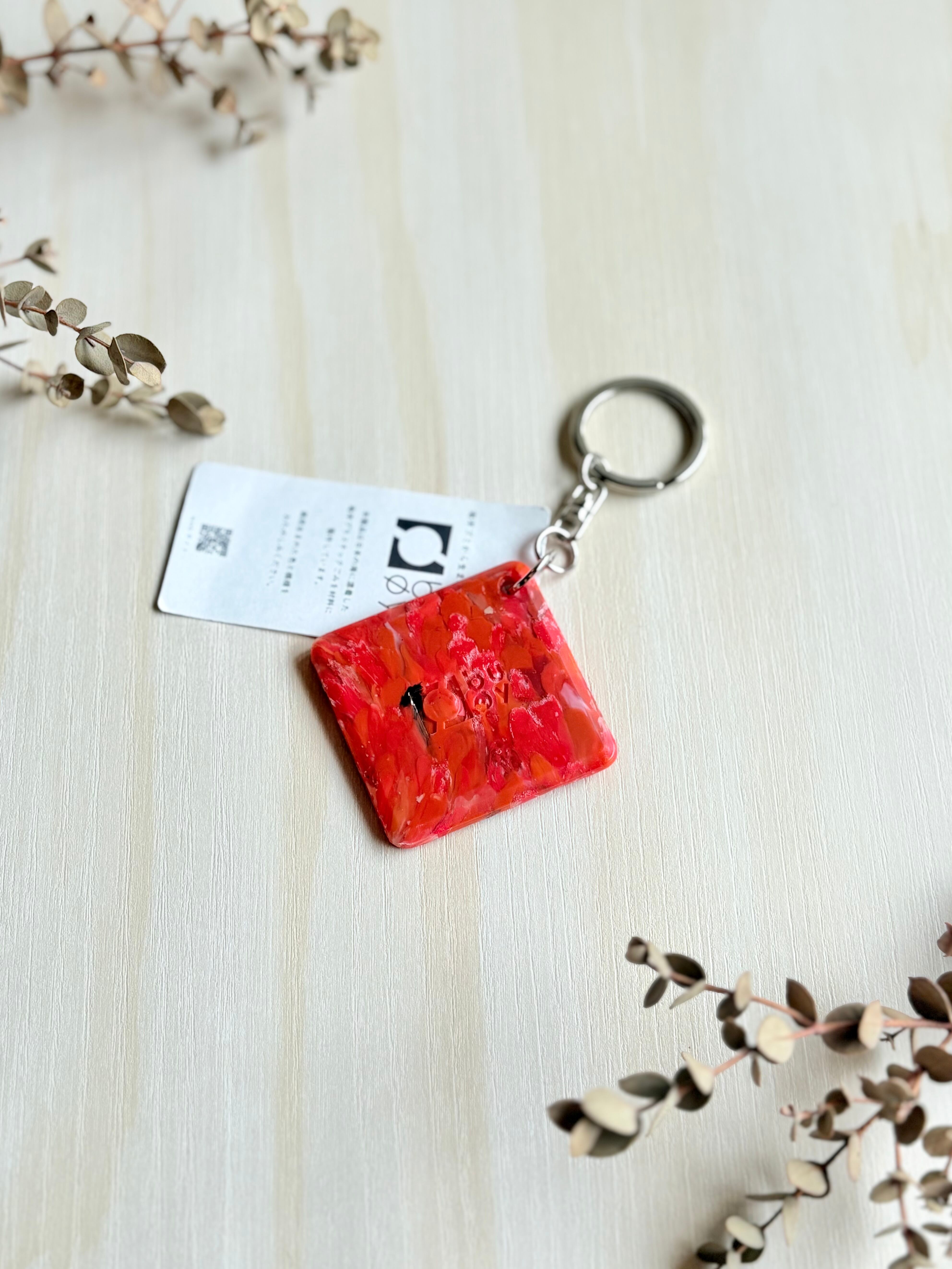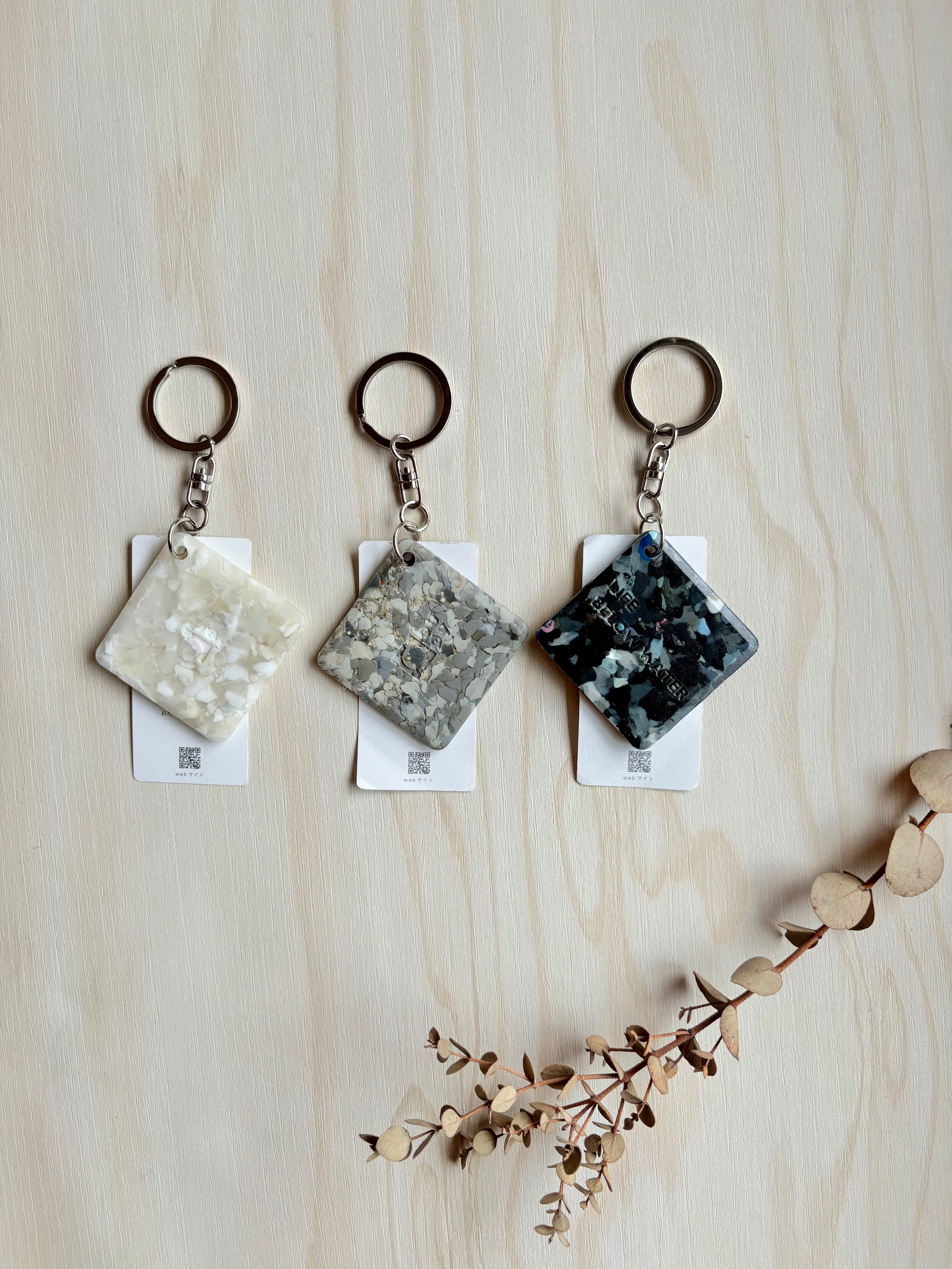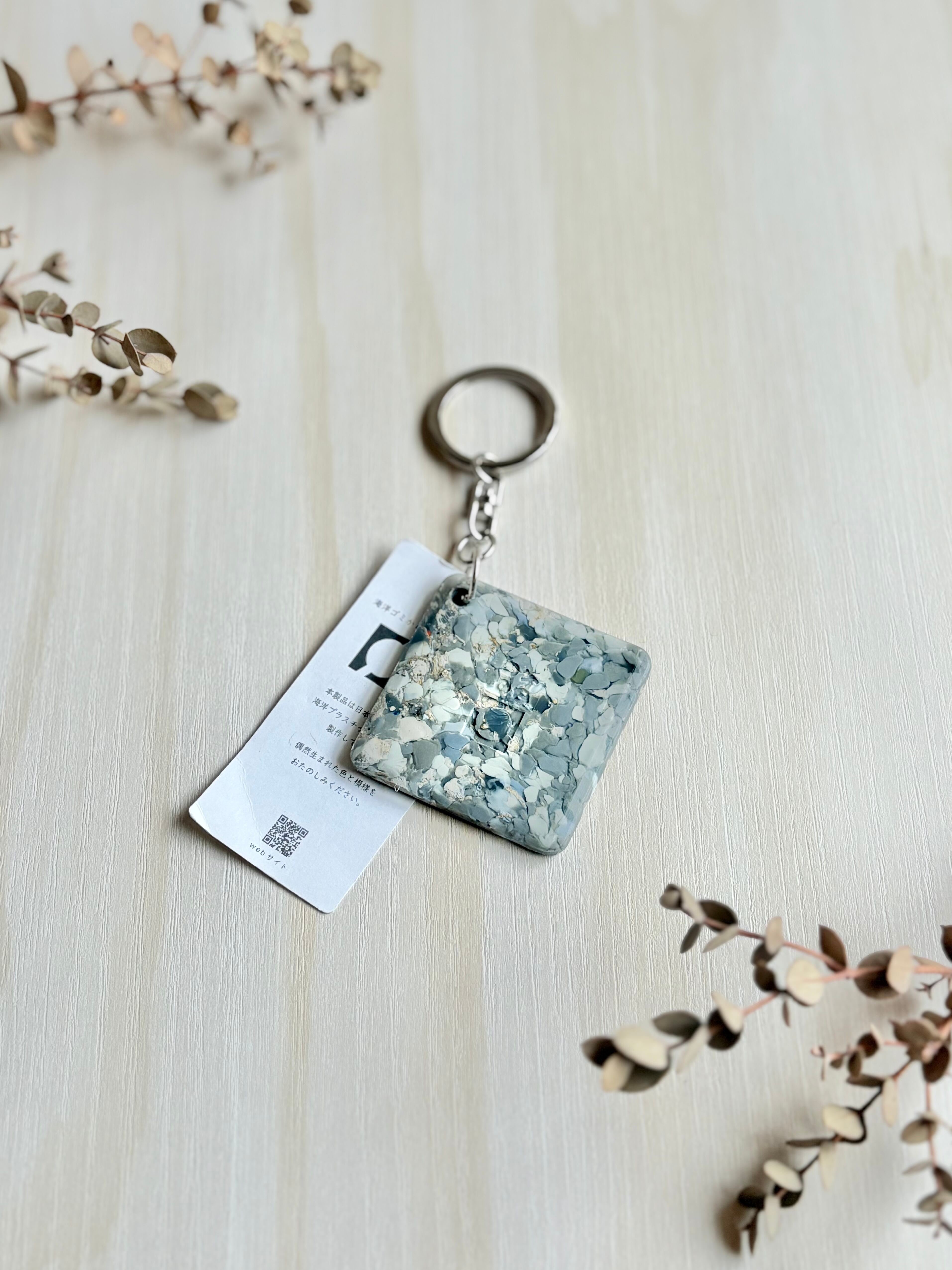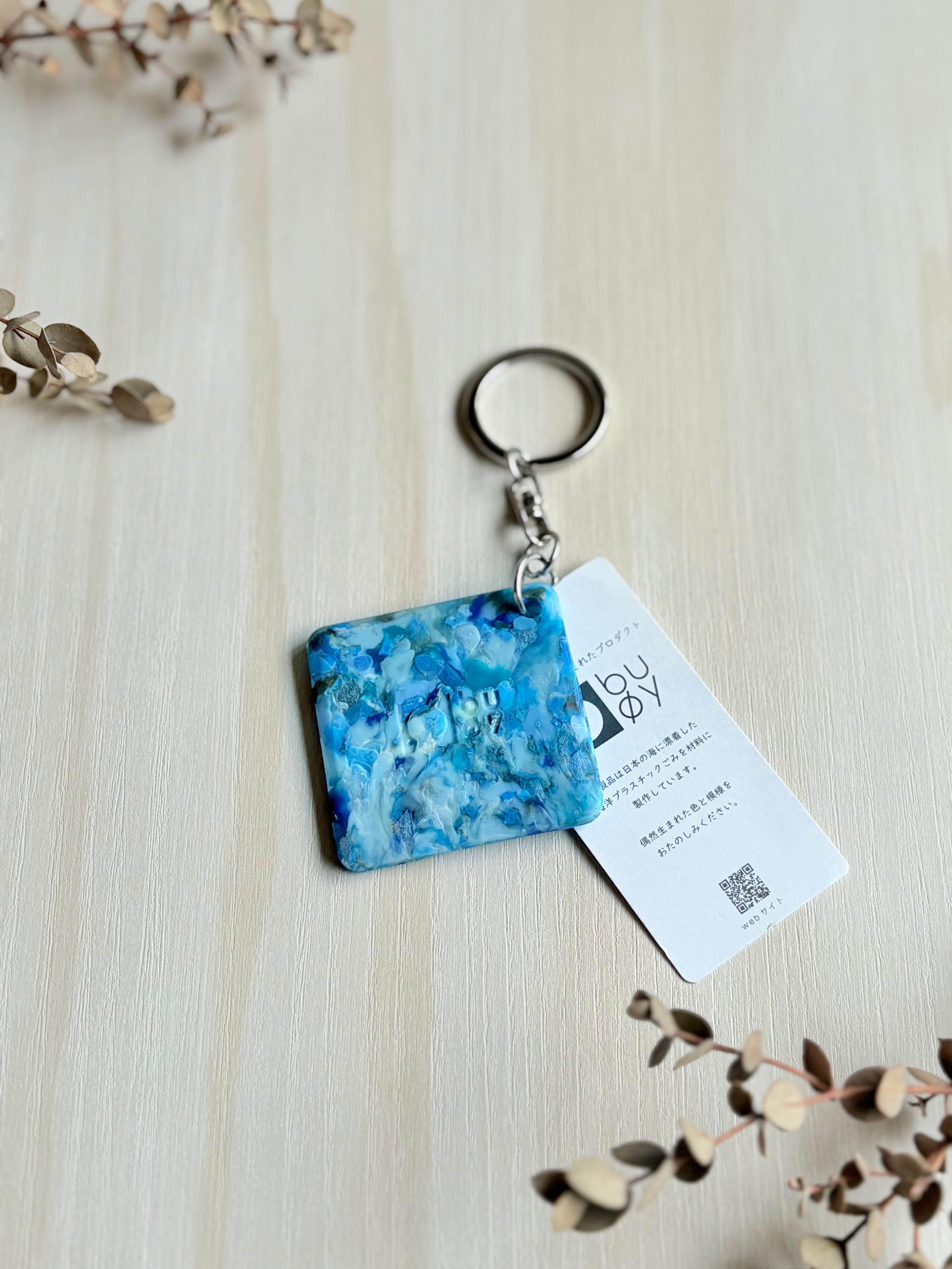 海洋プラステックをアップサイクル キーホルダー しかく